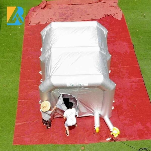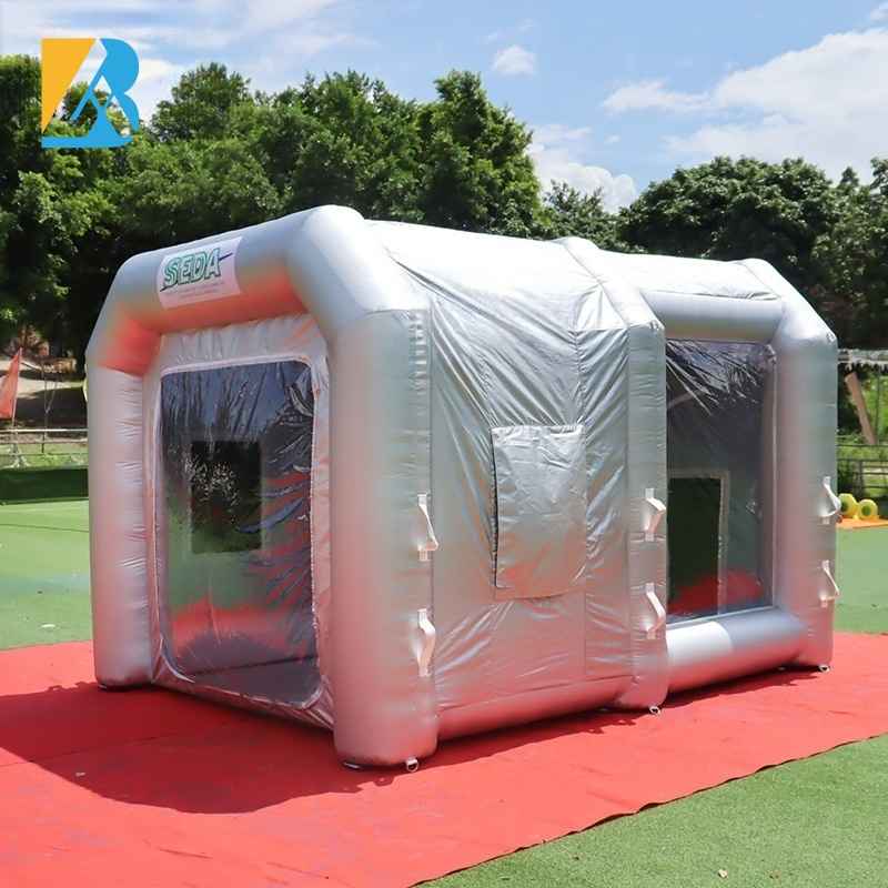 Place of Origin: Guangzhou, China Brand Name: BAI Model Number: BAI-T0094 Type: Tent Color: Silver or customized Size: 3.6X2.9X2.5 Metersor customized Material: oxford fabric Certificates: CE; UL Blower: 220V-240V / 110V-120V ( with matched Plugs accordingly ) Usage: Workshop, Painting art Accessories: 2 Air blowers, some ropes and sandbags, storage packing bag, repair fabric and air filters